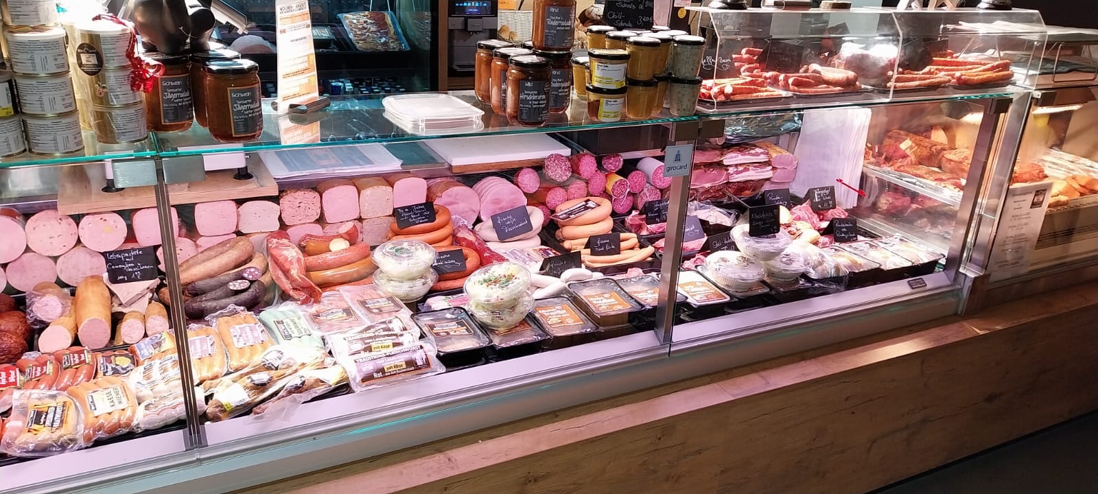 Entdecke unser Sortiment an frischen Fleisch- und Wurstwaren direkt an unserer Theke! Neben den Leckereien unserer heißen Theke findest du bei uns auch eine Auswahl an hausgemachten Salaten und leckerem Kochkäse.