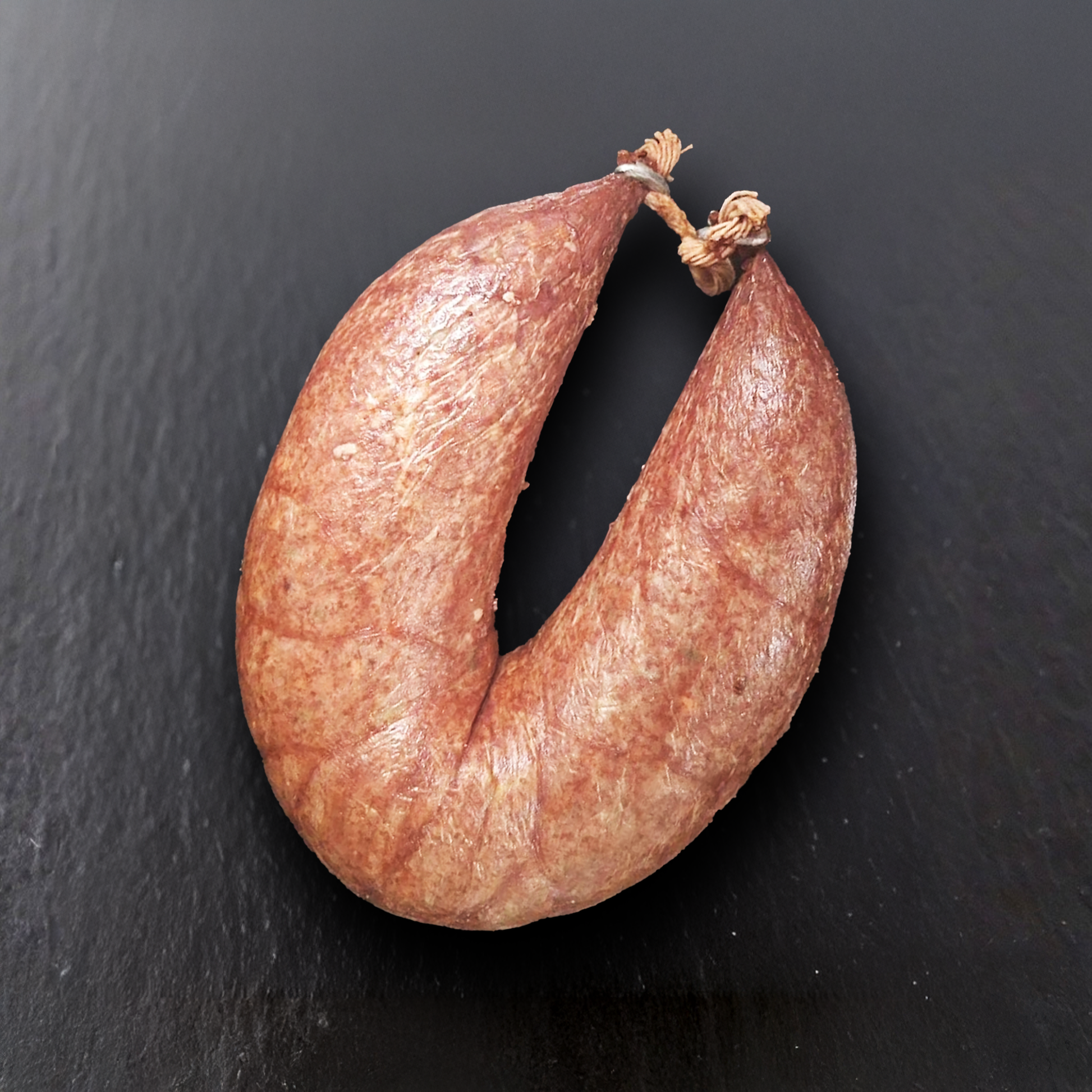 Unsere Blutwurst im Ringelsche ist ein echter Klassiker aus der traditionellen Metzgerei. Herzhaft im Geschmack, fein abgestimmt mit ausgewählten Gewürzen und hergestellt nach bewährtem Handwerksrezept. Ob kalt in Scheiben auf frischem Bauernbrot oder warm mit Sauerkraut und Kartoffeln – so schmeckt ehrliche Hausmannskost.